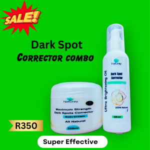 Say good bye to dark spots  and achieve beautiful flawless skin. This powerful combo fades dark spots, extremely brightens inner thigh, underarms, elbows, knees and necks. It effectively reduce the appearance of cellulite and stretch marks.